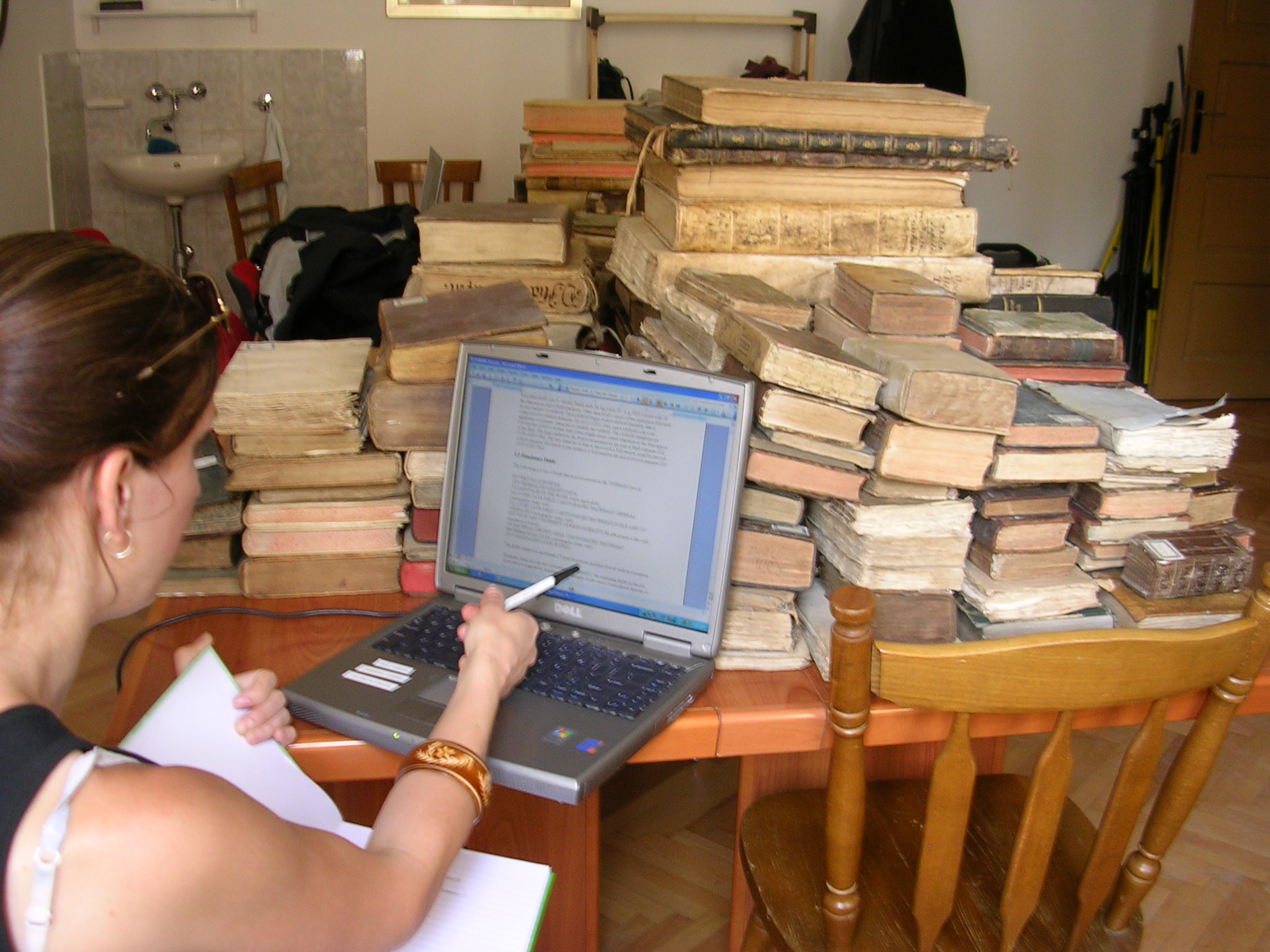 When the team arrived in Fojnica in 2006, we found tens of thousands of books—including thousands of antique books—piled in a storage room in the monastery. They had been moved here from a different storage room with a leaky roof, where they had incurred serious damage. In addition to the “killer fungus,” as specialists at the National and University Library of Sarajevo called it, we found dead animals among the books stored here.