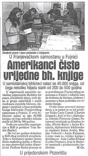 I directed the reconstruction of the Franciscan monastery of the Sveti Duh (Holy Spirit) in Fojnica, Bosnia and Hercegovina, from 2006-2008. This project was part of Builders for Peace, an organization established by Thomas Butler, which engaged in various projects across Bosnia, from restoring an historic minaret in Mostar to teaching English in Fojnica and Gračanica.
